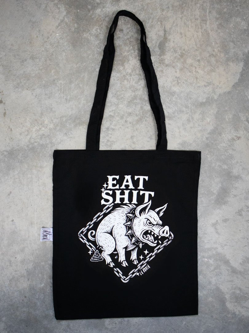 La Tote Bag Eat Sh*t es todo lo que nos gusta: un accesorio práctico con personalidad. De color negro y serigrafía con tinta blanca.